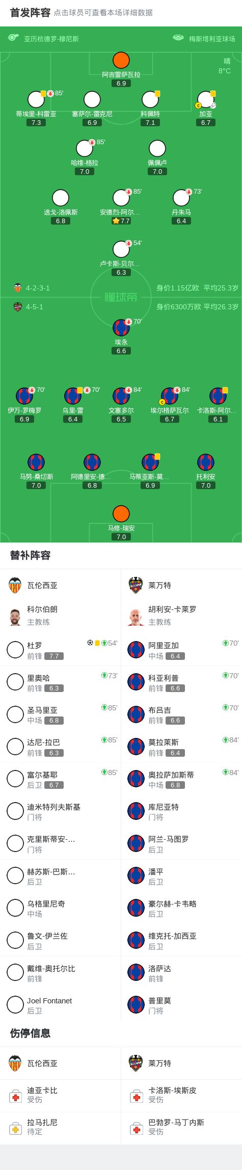 瓦伦西亚1-0莱万特,杜罗一击制胜